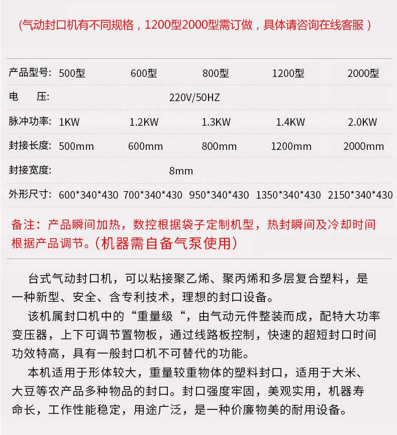 ZB-500型氣動(dòng)封口機(jī)商用 臺(tái)式塑料薄膜全自動(dòng)封口機(jī)