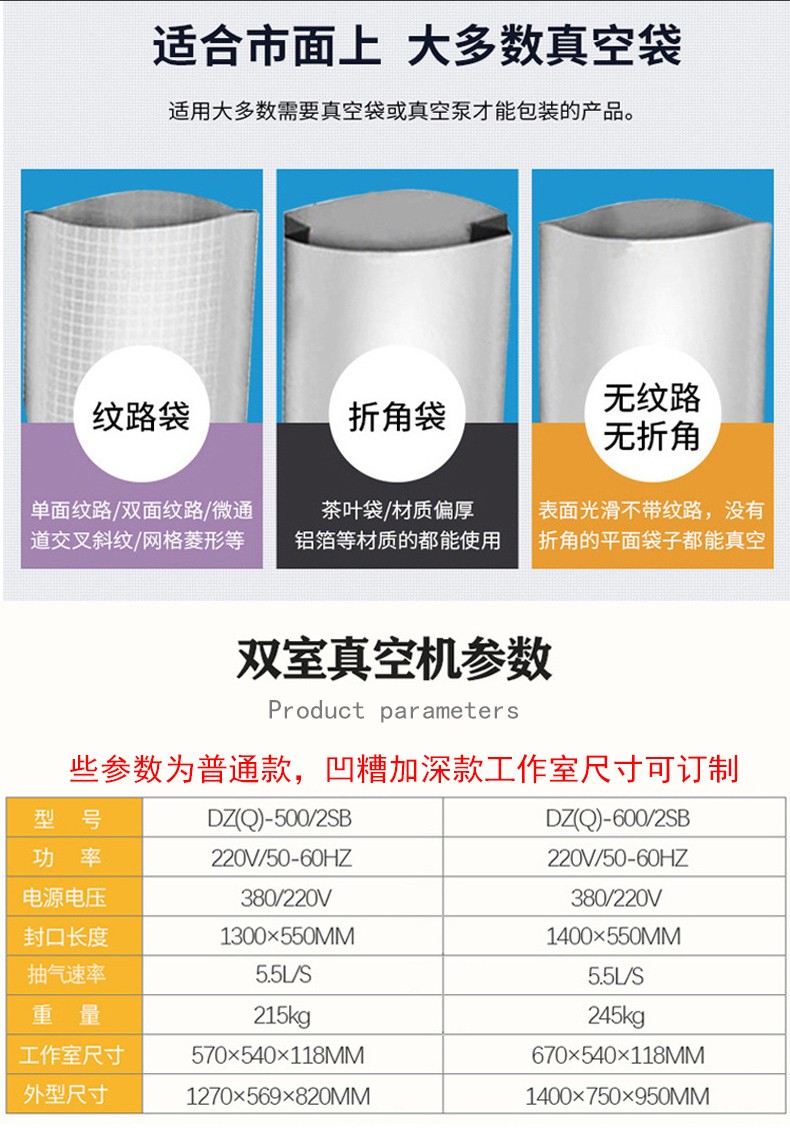 600/2SB凹糟加深款雙室真空包裝機大米食品塑料袋子抽真空封口機