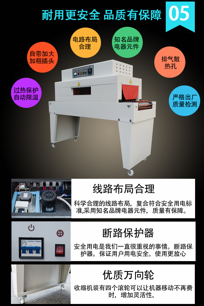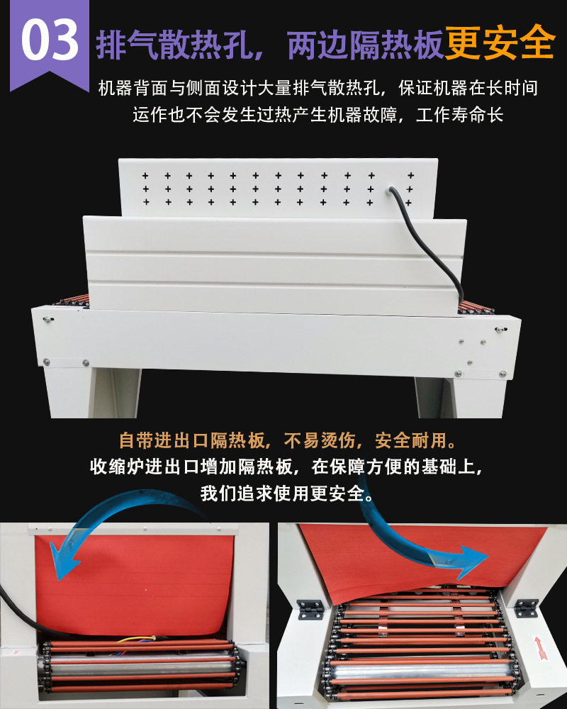 熱收縮機(jī)采用的進(jìn)口材料,保證了產(chǎn)品的質(zhì)量和性能,使您的產(chǎn)品在收縮包裝后,更耐用、更美觀,更具市場競爭力。